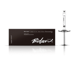 When BidanⓇ, a biodegradable hyaluronic acid polymer filler, is injected into the skin, it temporarily improves facial wrinkles in adults through physical restoration.