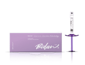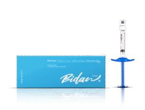 When BidanⓇ, a biodegradable hyaluronic acid polymer filler, is injected into the skin, it temporarily improves facial wrinkles in adults through physical restoration.